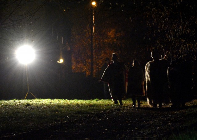 A karácsonyi betlehemes játék filmfelvétele a Gárdonyi Géza Emlékháznál